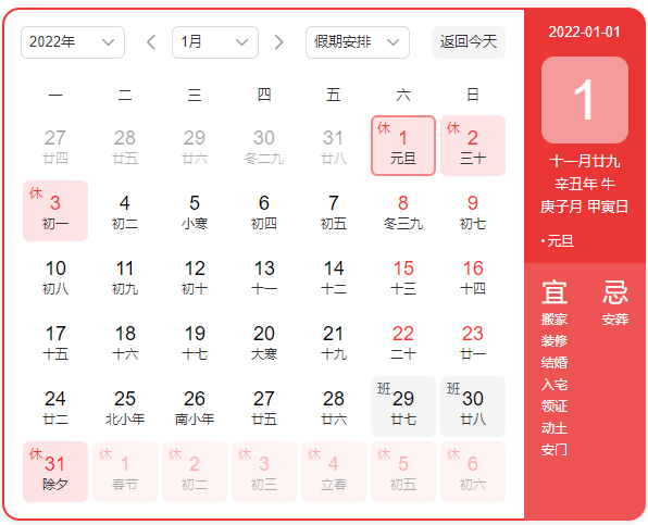 1月1日(星期六)至3日(星期一)放假,共3天。節日期間注意安全,減少人員聚集和外出,加強個人防護,度過一個歡樂、祥和的節日假期。