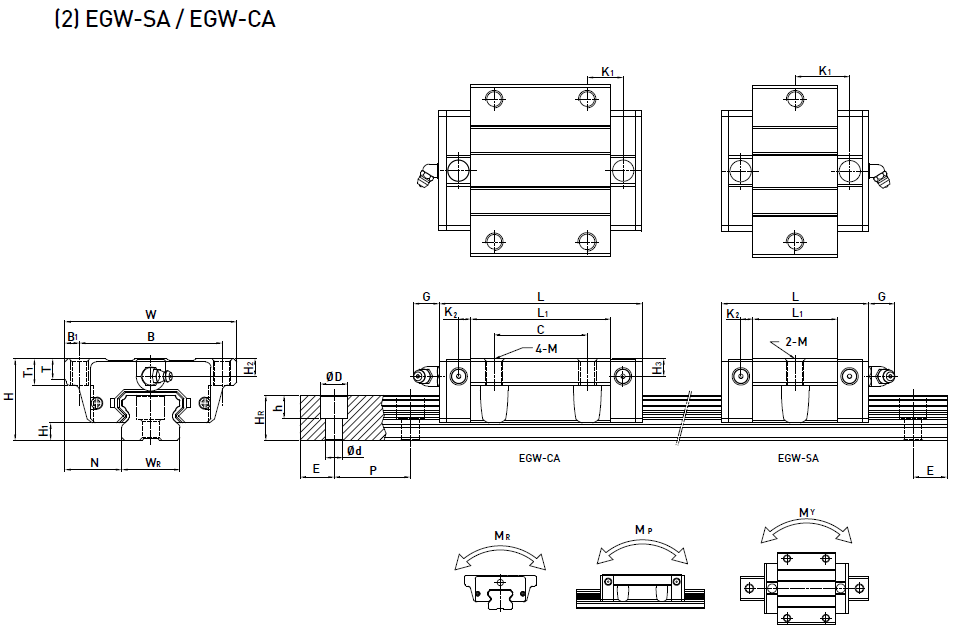 EG系列使用四列鋼珠承受負荷設計,使其具備高剛性、高負荷的特性,同時具備四方向等負載特色、及自動調心的功能, 可吸收安裝面的裝配誤差,得到高精度的訴求。 加上降低組合高度及縮短滑塊長度,非常適合高速自動化產業機械及空間要求的小型設備使用。