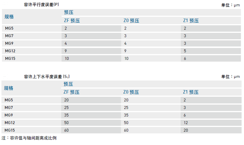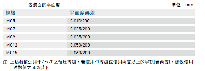 微型滾珠直線導(dǎo)軌MG系列安裝平面誤差對(duì)照表