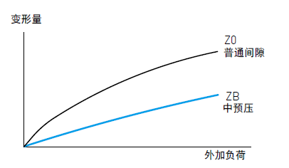 預(yù)壓力是預(yù)先給與鋼珠負(fù)荷力,亦即加大鋼珠直徑,利用鋼珠與珠道之間負(fù)向間隙給與預(yù)壓,此舉能提高直線導(dǎo)軌的剛性及消除間隙;以下圖來解釋,提高預(yù)壓力可增加直線導(dǎo)軌剛性。但小規(guī)格建議選用輕預(yù)壓以下預(yù)壓,以避免因預(yù)壓選用過重降低其使用壽命。
