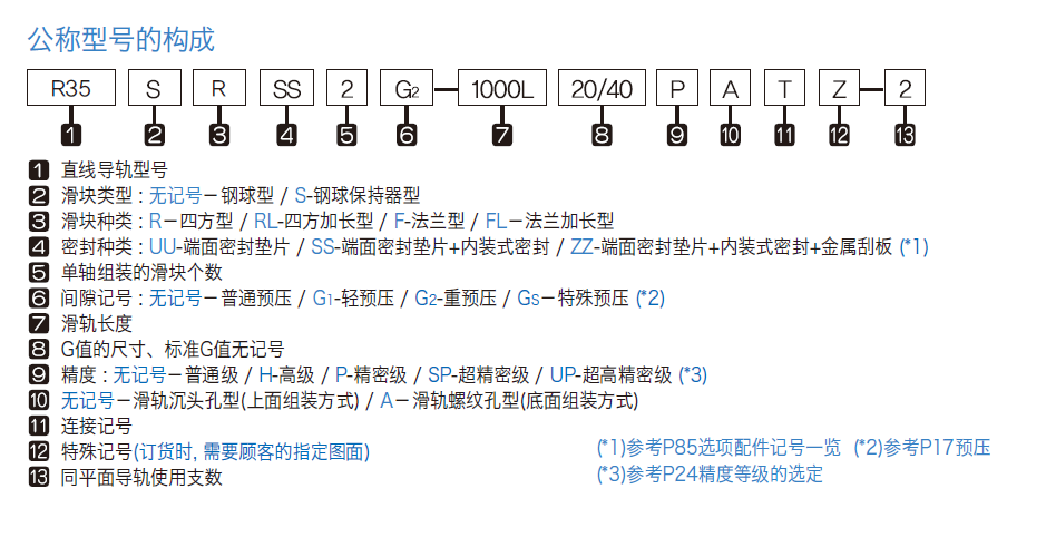 精度 : 無記號-普通級 / H-高級 / P-精密級 / SP-超精密級 / UP-超高精密級 (*3)